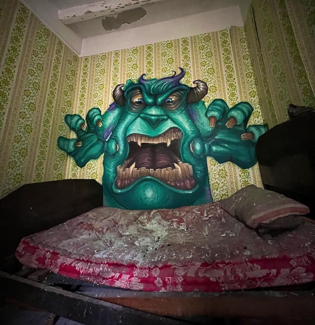 🎃 Artist: #DavidBcn - in City: 🤫 somewhere in #Barcelona Spain 🇪🇸 - #streetart #art #mastoart #mural #graffiti #lostplaces #abandoned #hiddenplaces #Halloween #Halloweentoot 👻