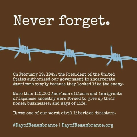 Today is the day we call #DayofRemembrance, to commemorate the day 77 years ago that defined my life. On that day, President Franklin D. Roosevelt signed Executive Order 9066, which imprisoned my family and me simply because we looked like the people that bombed Pearl Harbor.