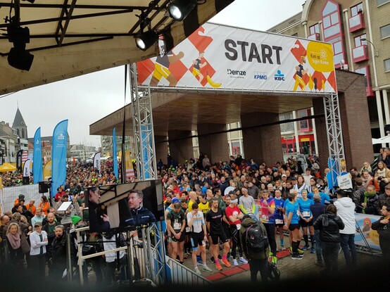 Al "vollen bak" ambiance hier in Deinze voor de 5e editie van #de100kmrun voor Kom op tegen Kanker.