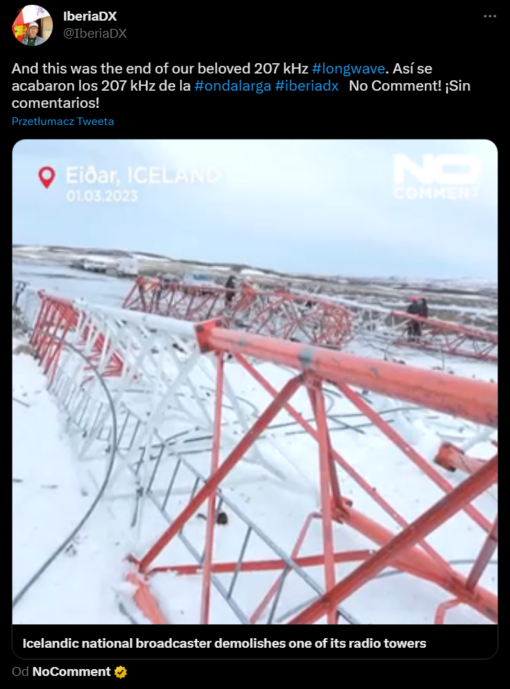Very late it is but better late than never... just noticed the take-down of the RUV #longwave mast at Eidar (former 207 kHz) had made it to Euronews' No Comment 😮