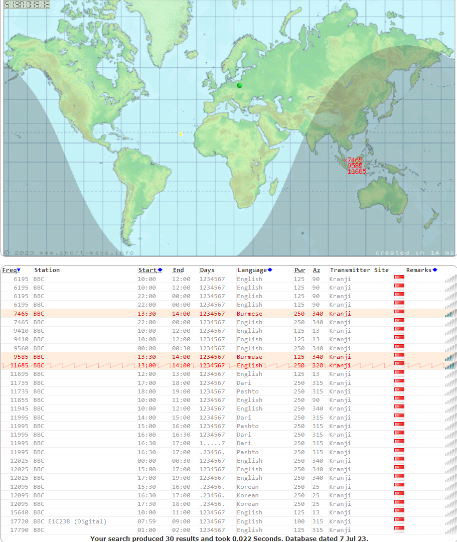 Prompted by @RW Observer on Twente #WebSDR chat, I checked BBC WS morning transmissions to Middle East via A'Seela🇴🇲: 03-04z 12095, 13580 kHz; 04-05z 13580, 15310 kHz. Strangely, they're registered in HFCC as starting July 10 o.O but I don't think they were replacing anything...