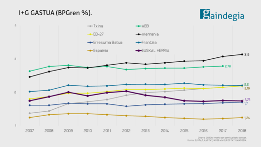 ðBPG ez da gure jendartearen zaintza ta ongizatea bermatzeko adierazle egokiena, baina I+G datuak hauexek....#debateaETB