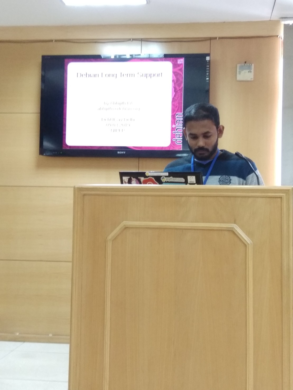 Abhijith PA talking about #Debian LTS project #DebUtsavDelhi #DebUtsav