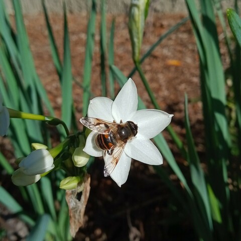 Day 2 of the #ArtAdventCalendar and I found this bee visiting my paperwhite narcissus that is blooming early this year in my garden. This December morning is a little chilly but that hasn't stopped this bee from making its rounds. #bees #FlowersOnFriday #DecemberGarden #NaturePhotography