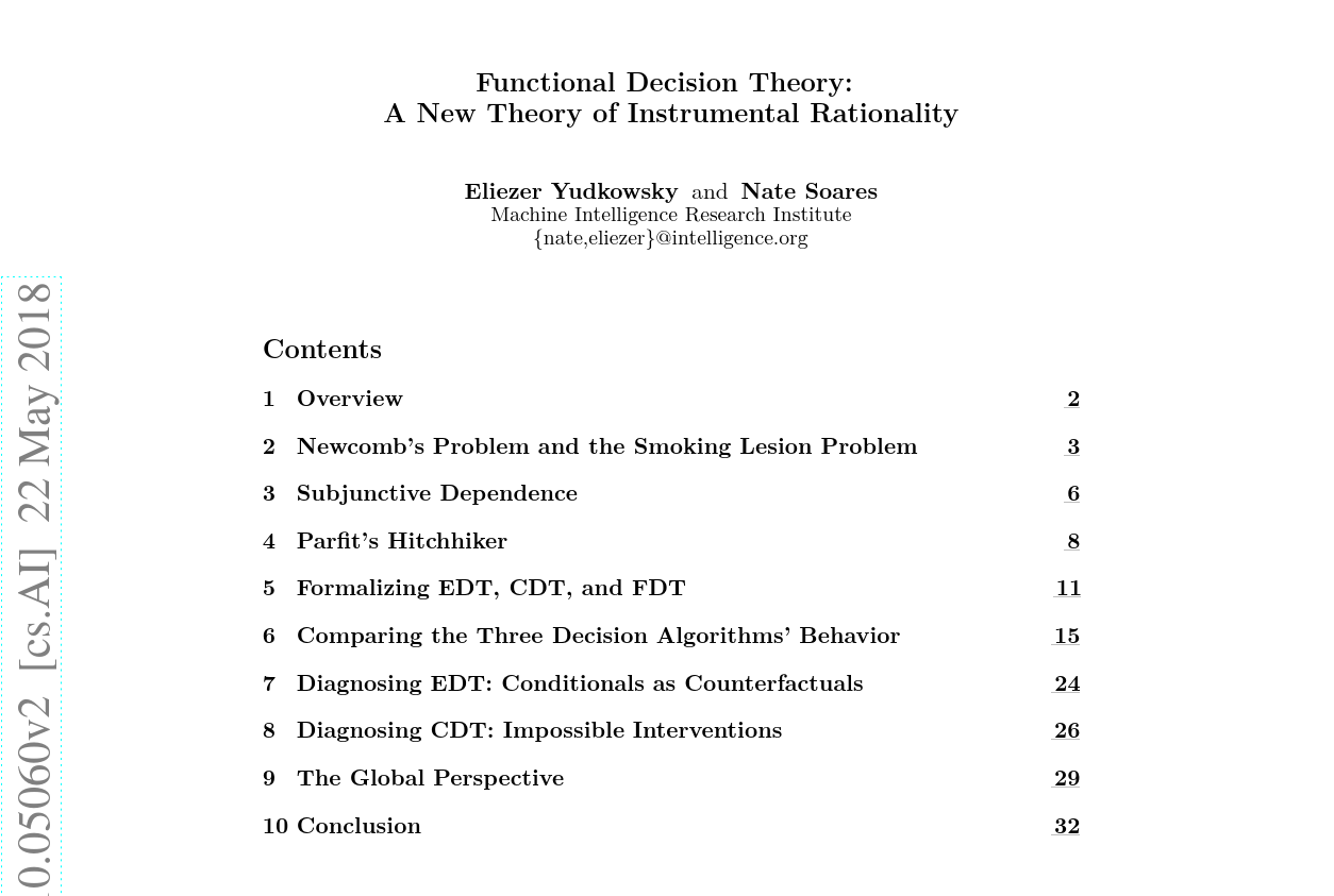 "Functional Decision Theory: A New Theory of Instrumental Rationality" by Yudkowsky and Soares