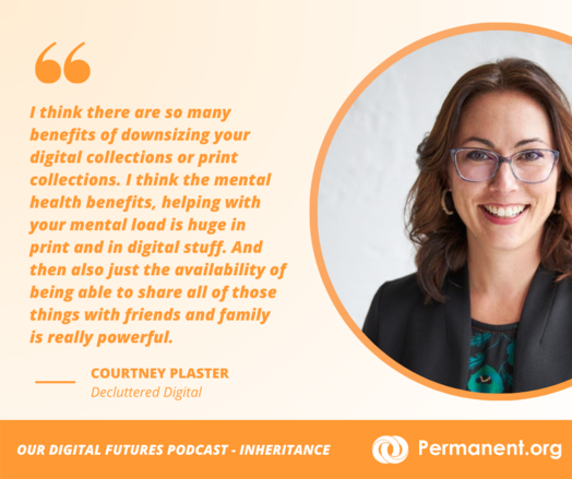 Tackling your print and digital collections can be overwhelming. In our upcoming podcast episode about inheritance, we talked with Courtney Plaster from https://www.decluttereddigital.com/ about how decluttering and organizing your collections can help lessen the stress. #OurDigitalFutures #Declutter #PhotoManagement #DigitalPreservation