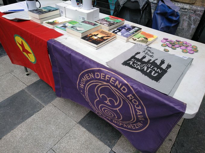Recogida de firmas para la campaña de sacar el PKK de la lista de organizaciones terroristas de la UE y venta de material en la feria de colectivos en Bilbi✌✊