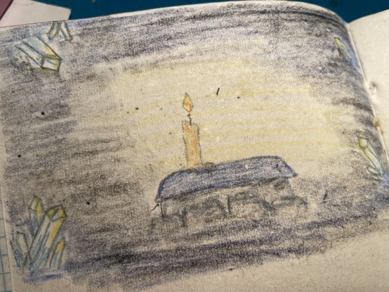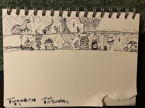 Outline for tomorrow with kiddo’s help: a moon-pool (lightly iced over) to the ocean channel below where miners would launch in a submersible? And a creature (medium sized beast, barbed… a walrus-thing with a whippet harpoon-like tail) - need a name for it! #dungeon23 #ttrpg #ironsworn #delve