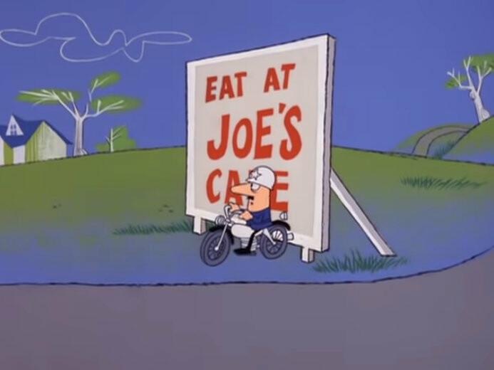 Pink Panther - Put, Put, Pink (1968) features an Eat At Joe's sign.