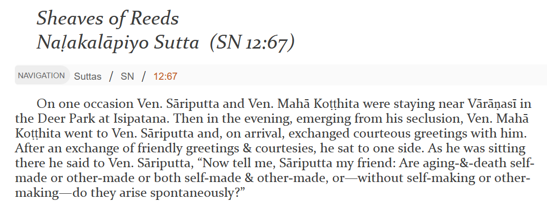 I think I just want to really live in a place and time where you can just walk up to someone and say, "Greetings! Are aging-&-death self-made, or other-made, or both, or neither?" #DependentOrigination #Buddhism