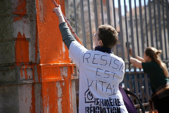13h. En ce moment, des citoyens et citoyennes soutenant #DernièreRénovation ont aspergé de peinture orange les façades des préfectures de cinq métropoles françaises : Lyon, Marseille, Nantes, Toulouse et Tours. [1]