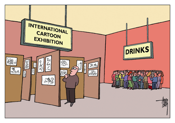 ce qui intéresse les visiteurs à l'expo internationale des dessinateurs de BD ( https://en.wikipedia.org/wiki/International_Cartoonists_Exhibition ) c'est bien plus le bar que les dessins eux-mêmes