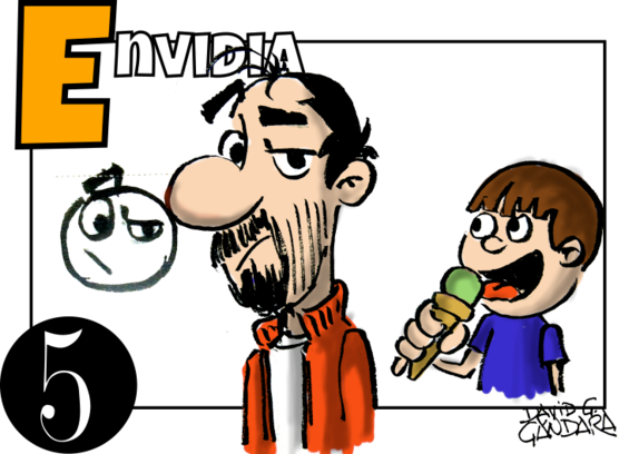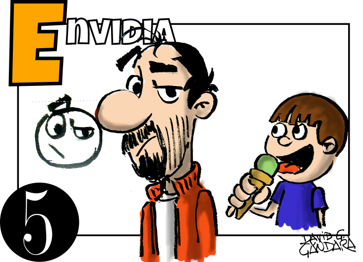 Día 5 del #dibucedario2023 de @ramon_besonias : ENVIDIA: Una ceja levantada, boca contrariada... Esta emoción es muy difícil gráficamente!