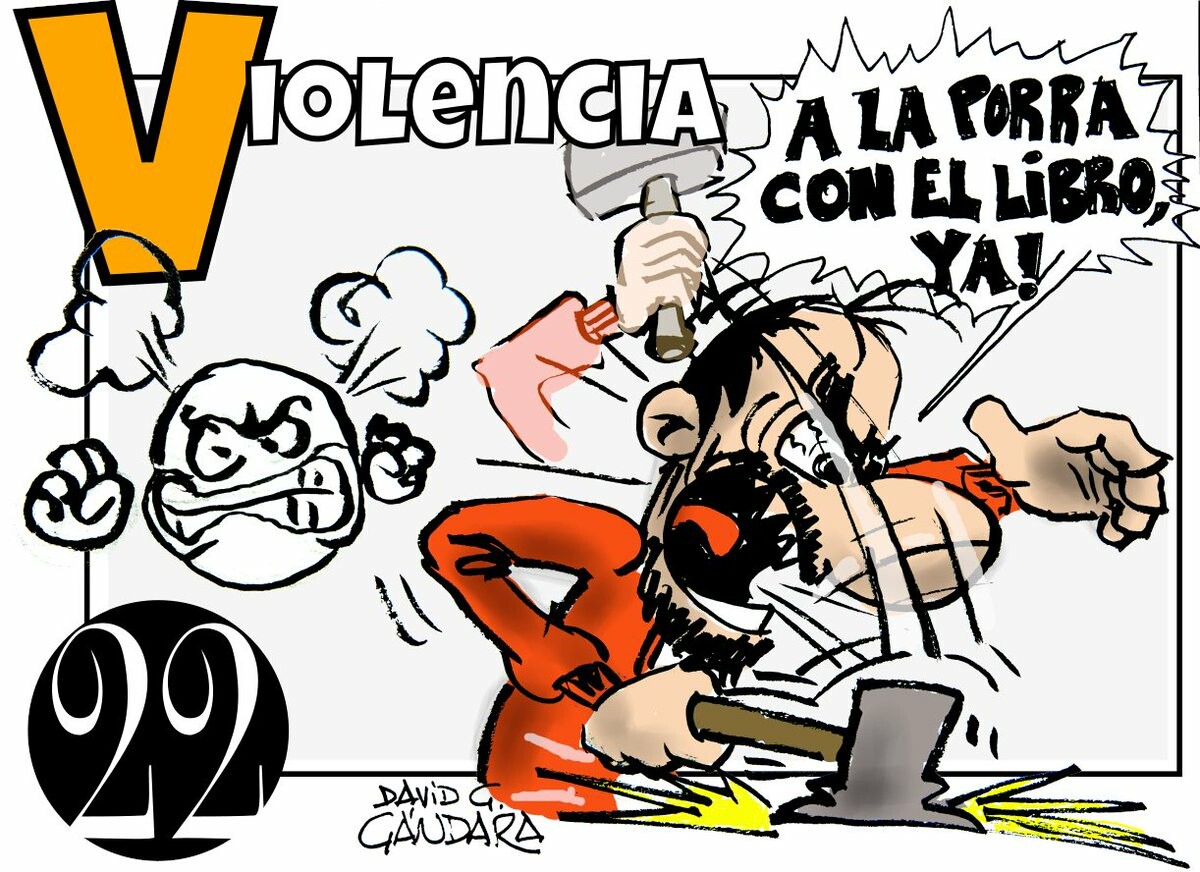 #dibucedario2023, día 22. VIOLENCIA: ojos encencidos, cejas hacia abajo, movimientos bruscos, músculos tensionados.