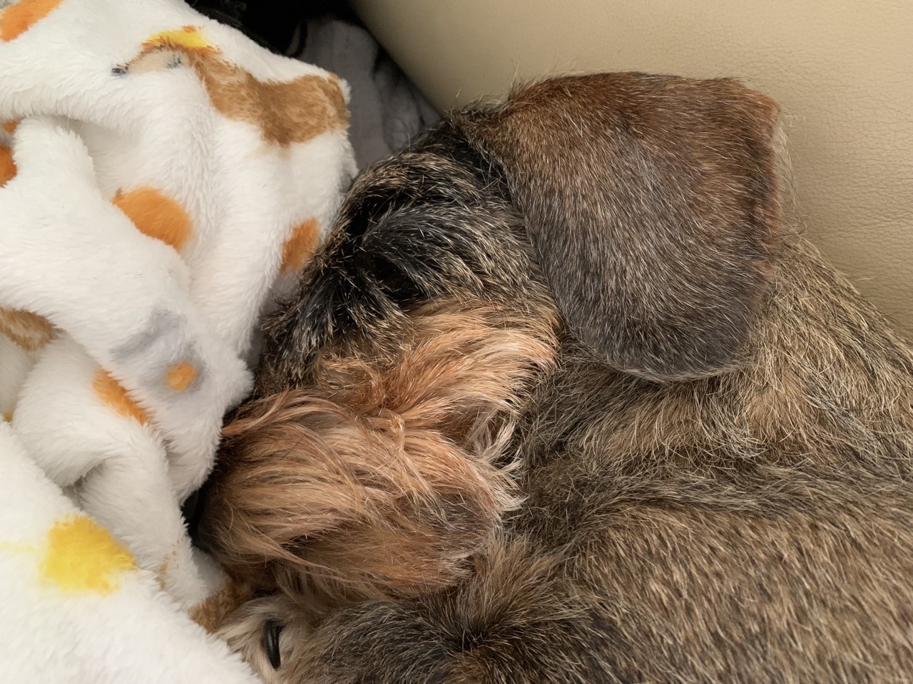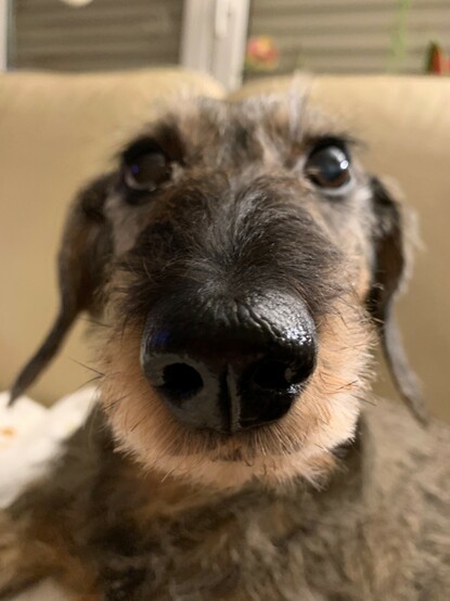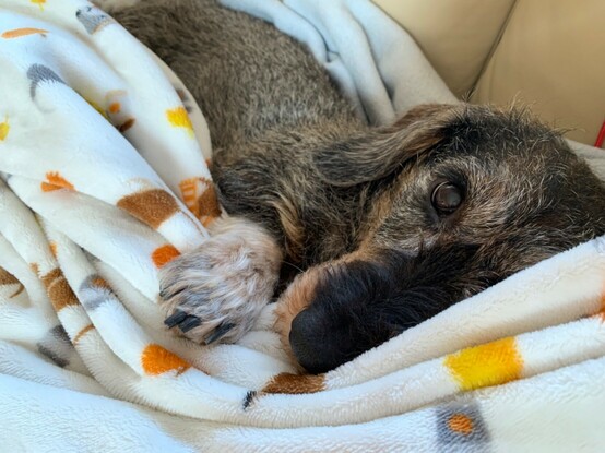Die Dackeline ist noch nicht so sicher, was sie von Energiesparen und wenig heizen halten soll. Der bevorzugte Platz ist derzeit unter zwei Decken auf dem Sofa