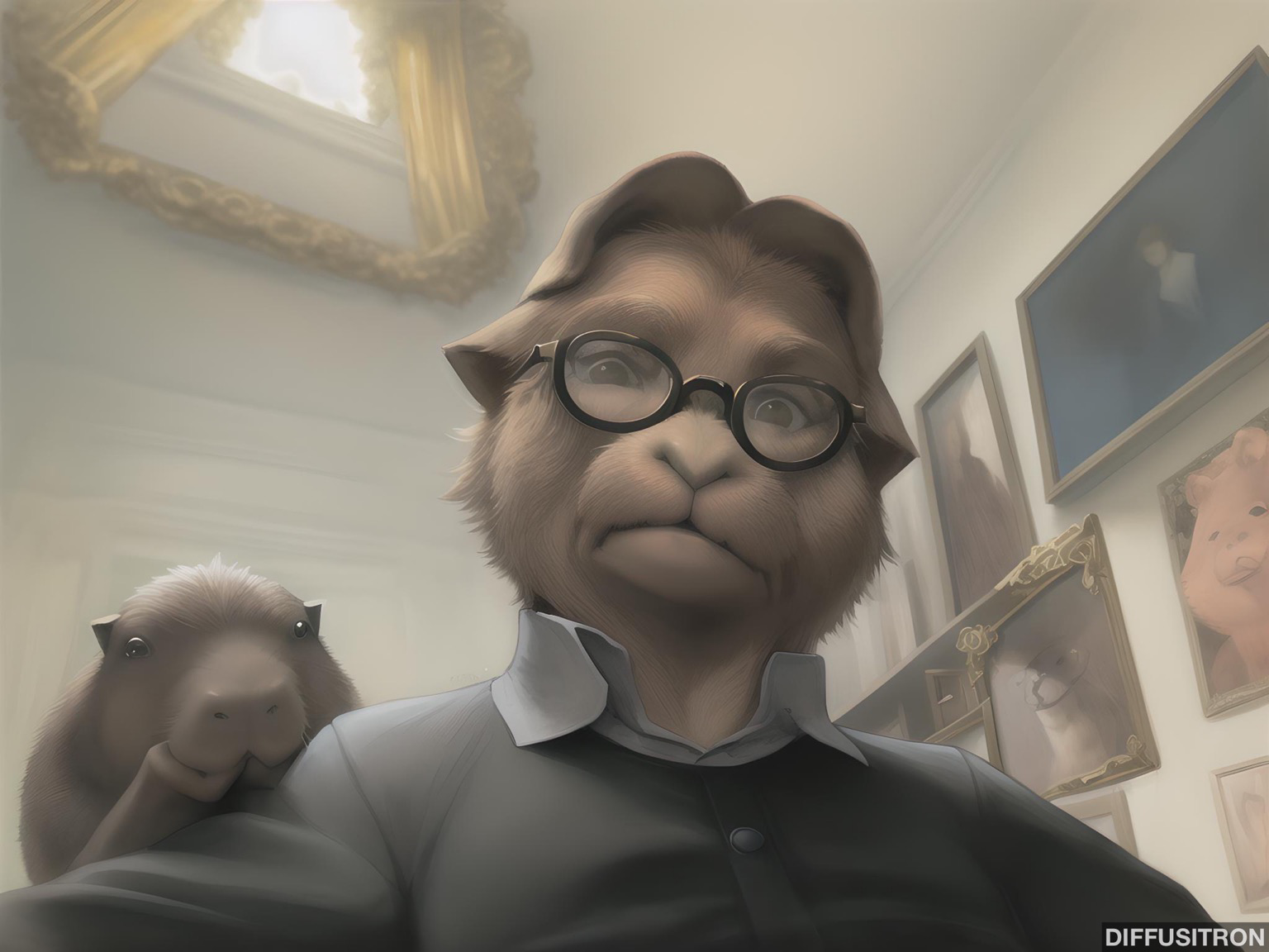 I prompted for a capybara wearing glasses in the style of Rembrandt, and this is what I got. #AIart #diffusitron #capybara