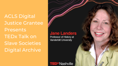 Jane Lander's TEDx talk in Nashville on “The race to save endangered African history across the Atlantic World,” focusing on her research and work on the Slave Societies Digital Archive.
