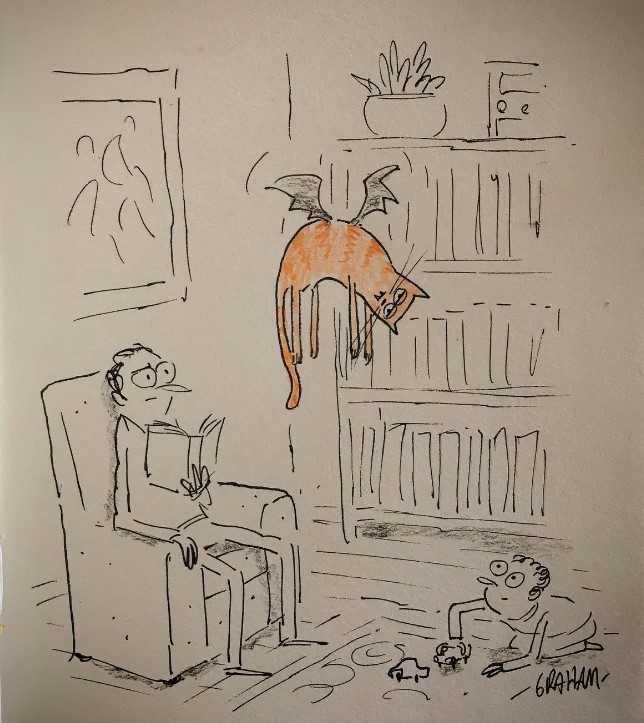 Although everyone had gotten used to Gracie’s bat wings, she never looked all that dignified whenever she chose to use them. #grickledoodle #oldies #Thursday #cat #bat #grace #dignified https://gricklemart.com/second-delightful-graham-annable-doodle-collection/