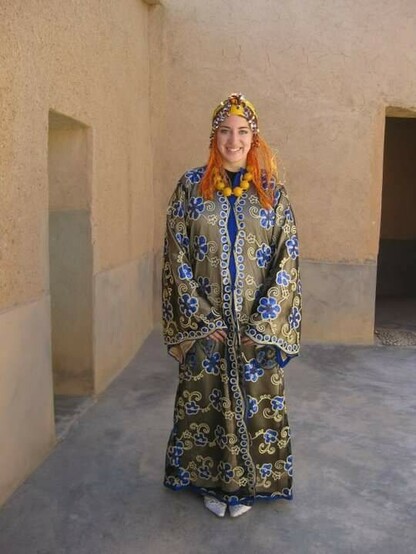 [Here's a 2010 photo of me hanging out in Tinzouline, Morocco, dressed in a friend's ShleuH clothing.]