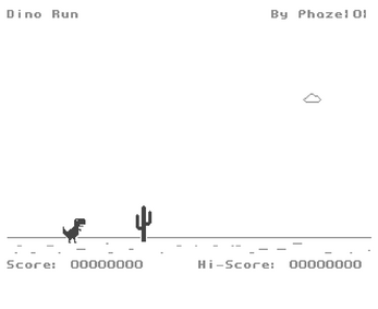 Dino Run by Phaze101 is a simple game made for Commodore Amiga OCS. The game is a clone based on Google Chrome's Dino Run, hence the same name.