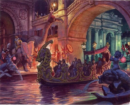 The canals of Waterfall City at night are a place of masquerades and magic.