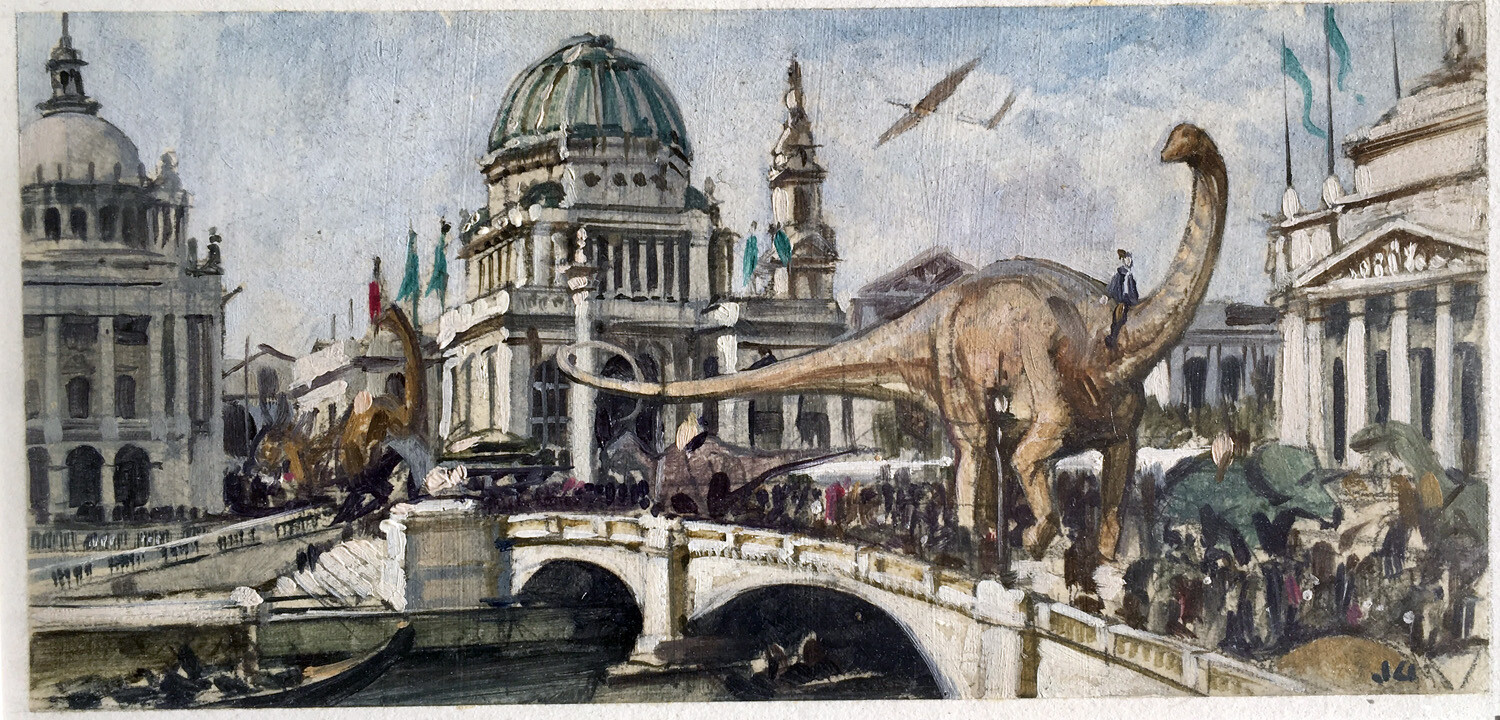 Pageant day in Sauropolis, a tiny concept sketch for a Dinotopia painting, inspired by the architecture of capitols in Missouri, Pennsylvania, and Rhode Island, and by the World Columbian Exposition in Chicago in 1893, and the related expos in Paris and Saint Louis. #dinotopia