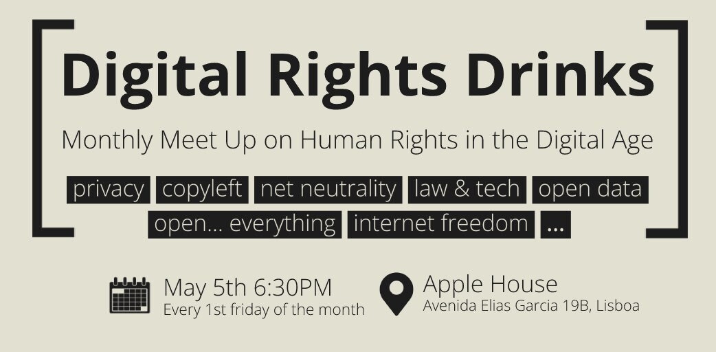 Na próxima Sexta-feira, como todas as primeiras Sexta-feira de cada mês, é dia de Digital Rights Drinks em Lisboa.