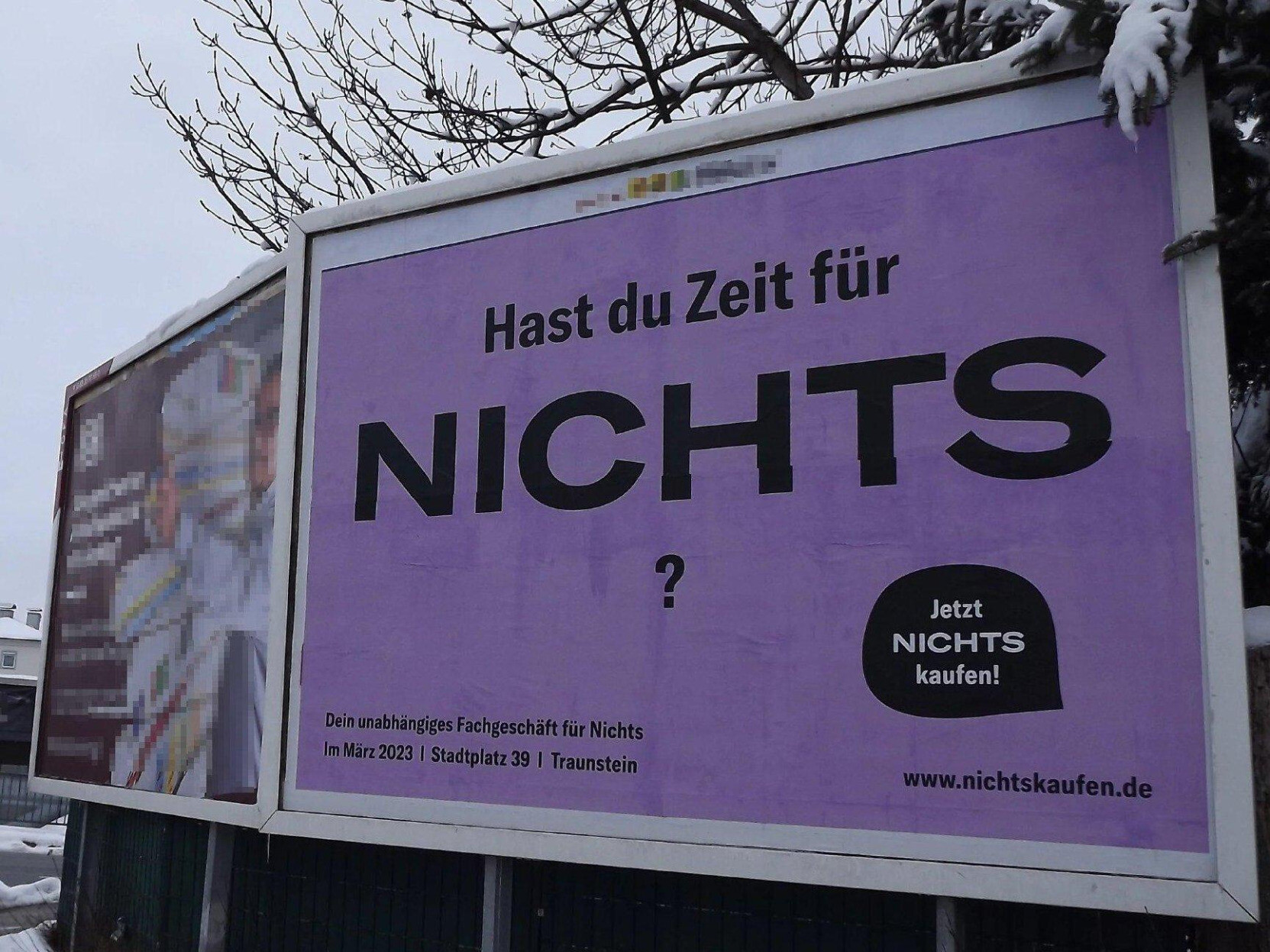 Jeder Einkauf im Onlineshop (nichtskaufen.de) oder lokal im Pop-Up-Store hilft dabei, Werbung für ETWAS durch Werbung für NICHTS zu ersetzen.