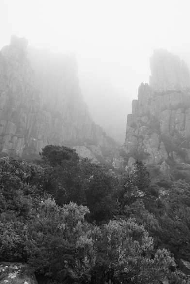 Just before you climb Jacob's Ladder, make sure you look to your left and up, up, up. These are just a section of the craggy peaks of Ben Lomond, Tasmania. We thought we'd do a quick drive up the mountain to have a poke around. Ill-prepared, we got out of the car and were instantly soaked by the low-hanging clouds. It's really not that far a drive from Launceston and worth every second. #discovertasmania #blackandwhitephotography #landscape #mountains #adventure #travel #wilderness #pentaxaustralia #pentax #nationalparks #photography