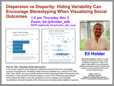 @elibryan has an interesting information on #dispersion vs. #disparity in #dataviz and how that can influence social #inequality and harmful #stereotypes. The referenced article on #medium contains a link to the actual presentation: https://medium.com/@elibryan/q-a-responses-to-my-dispersion-vs-disparity-workshop-wellesley-99e2869381c9