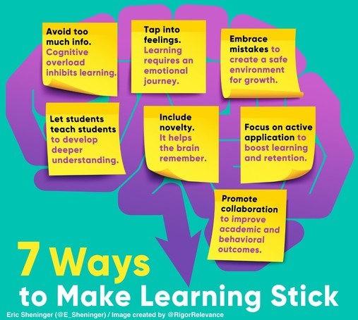 7 Research-based ways to make learning stick https://esheninger.blogspot.com/2021/05/how-to-make-learning-stick.html #edutoot #edutooter #edutooters #education #pedagogy #disruptivethink #teaching #teachers #educators #learning