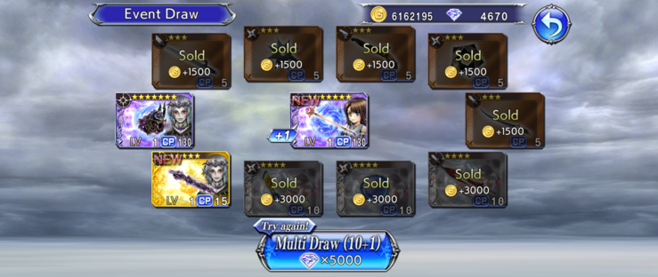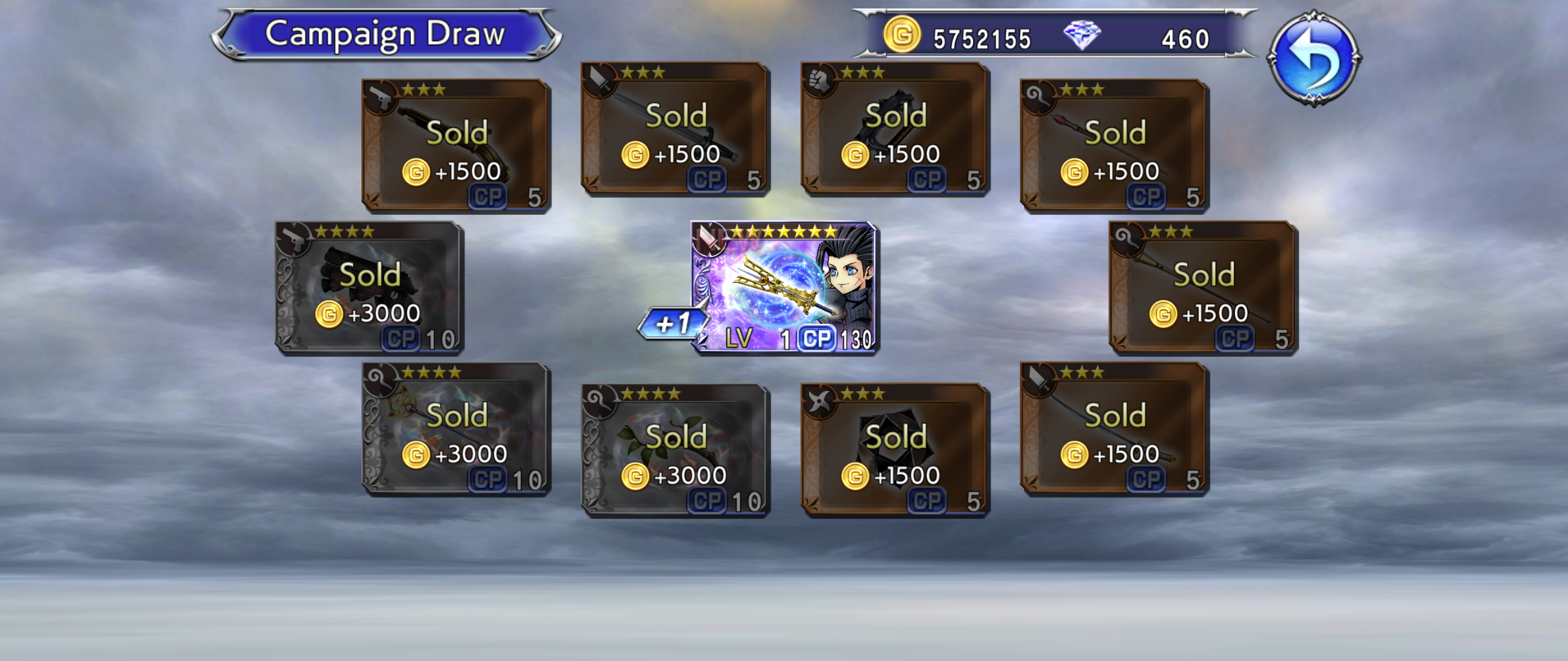 Wound up getting Squall's FR on the single free daily pull. That's pretty nuts. #DissidiaFFOO