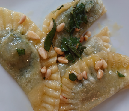 First time I've ever made Ravioli myself -- fully #Vegan filled with spinach, cashew based cream cheese and a ton of #garlic. I used way to much oil to toast them in the end but it turned out rather tasty. #diyordie