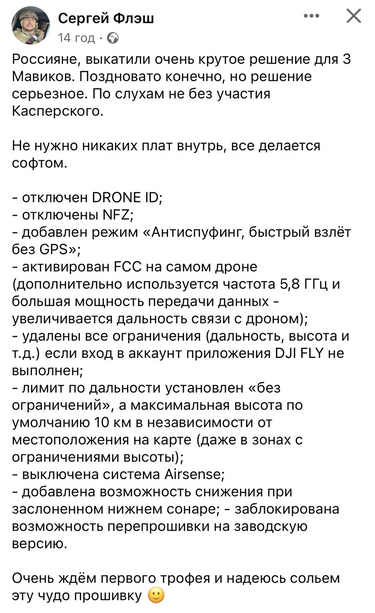 Флеш на ФБ пише, що кацапам вдалося добряче модіфікувати прошивку мавіків.
