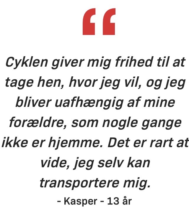 At kunne (og få lov til at) cykle, giver frihed. Ikke bare til børn/unge, men også til deres forældre.
