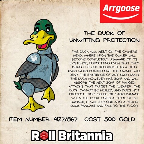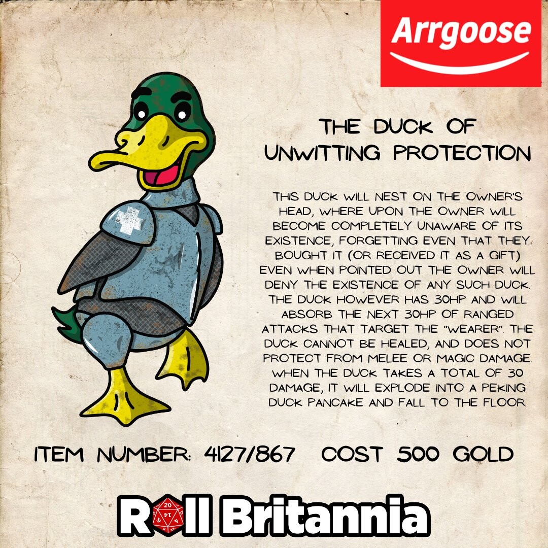 Join us as we dive deep into the Arrgoose Catalogue! This week we have Keth and M's personal bodyguard the Duck of Unwitting Protection.. - Arrg-Oose