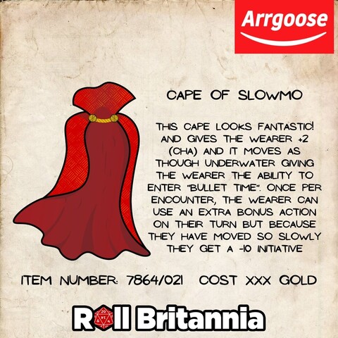 Join us as we dive deep into the Arrgoose Catalogue! Here we have Jeff's favourite the Cape of Slowmo! - Arrg-Oose