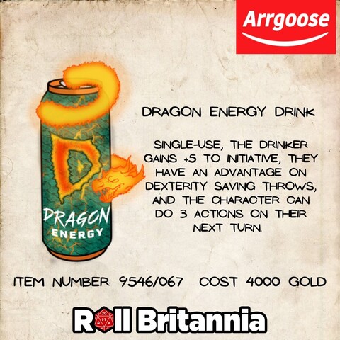 Join us as we dive deep into the Arrgoose Catalogue once again, this week we have Keth's favourite battle enhancement beverage - The Dragon Energy Drink! How would you use this to your advantage? - Arrg-Oose