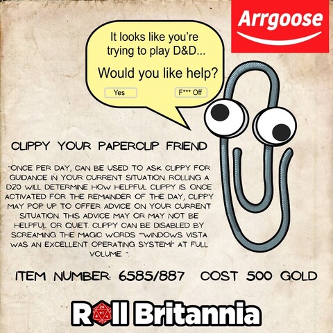 Join us as we dive deep into the Arrgoose Catalogue! This week we have Jeffs Clippy your Paper Clip Friend!.. ''WINDOWS VISTA WAS AN EXCELLENT OPERATING SYSTEM''. - Arrg-Oose 🏴☠️ #dnd #dnditems #magicalitem #dndmagicitems #arrgoose #angrygoose