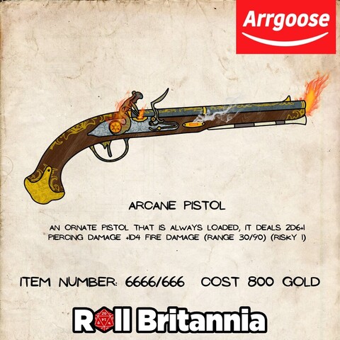 Pew Pew! Join us as we dive deep into the Arrgoose Catalogue! This week we have Derek & Keths fave go-to weapon the Arcane Pistol! - Arrg-Oose 🏴☠️