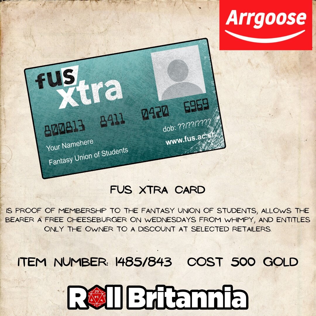 If discounted magic items are your thing then this week we have Milo's FUS Xtra Card! - now all he has to do is find out what stores accept it! - Arrg-Oose 🏴☠️