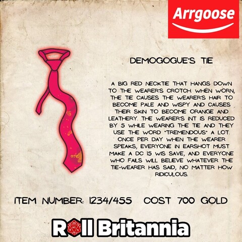 Join us as we dive deep into the Arrgoose Catalogue! This week we have the Demogogue's Tie isn't it tremendous! - Arrg-Oose 🏴☠️