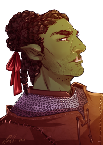 DnD portrait commission for Little--bumble--bee on tumblr of their handsome half-orc, Aster!