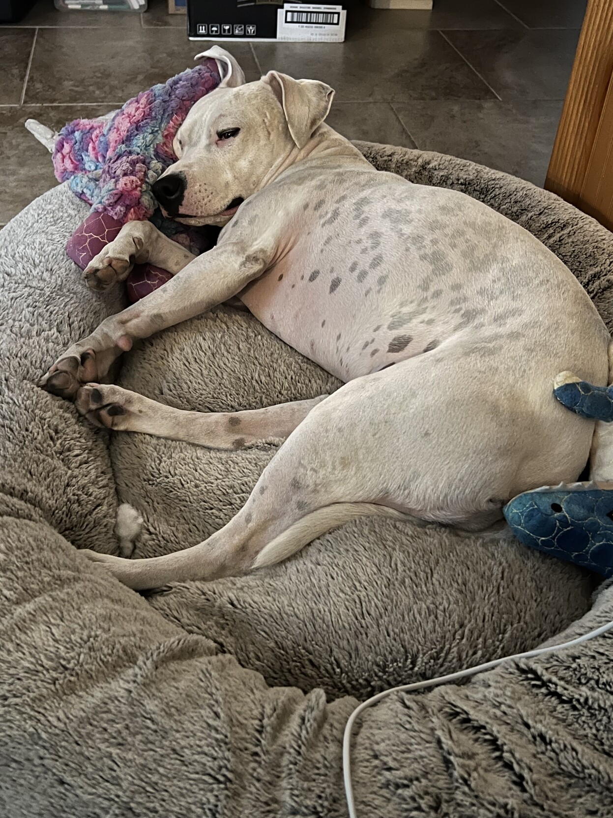 Laci is tired after a long walk today for #InternationalDogDay # #DogsOfMasto #DogsOfMastodon
