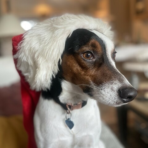 #dogsogmastodon #dogs #seniordog #jumper #wintertime #snoozing #newclothes