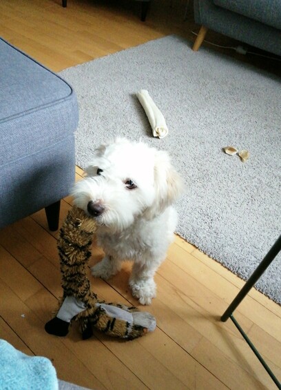 May I introducere my new friend, Theo? He is a sweet Coton de TulΓ©ar, approx. 1Β½ year old. β₯οΈπ₯°π #DogSpam