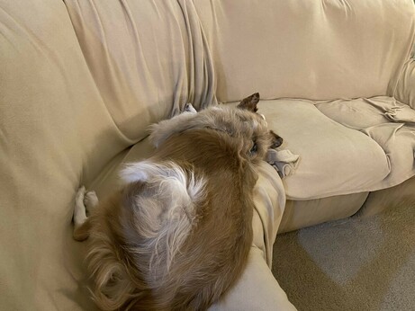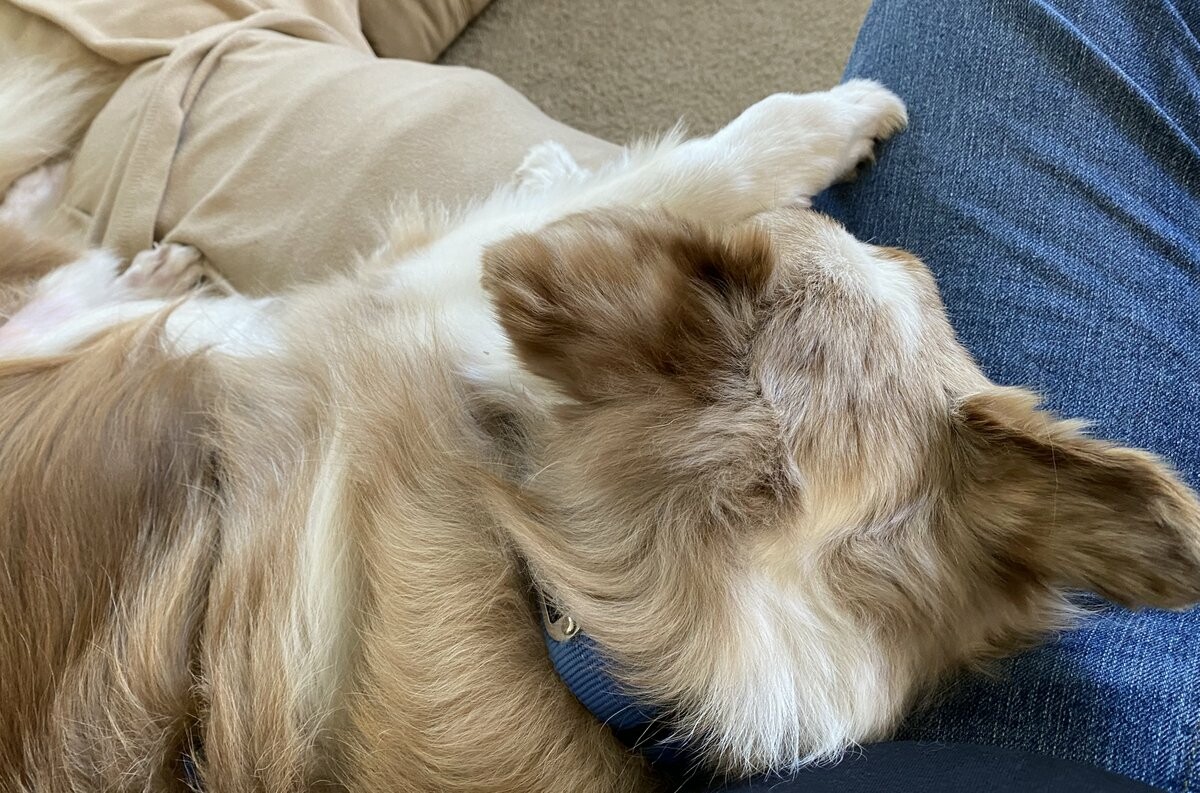 There are worse ways to spend a Sunday morning than relaxing on the sofa with a sleeping dog's head in your lap. #Dogtober