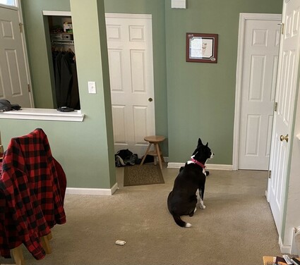 Only drawback is that the sound of the garage door going up has Nora absolutely certain someone is going to be walking in at any moment. #Dogtober