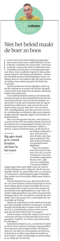 Zaterdag leestip: column Dolf Jansen in @Trouw.