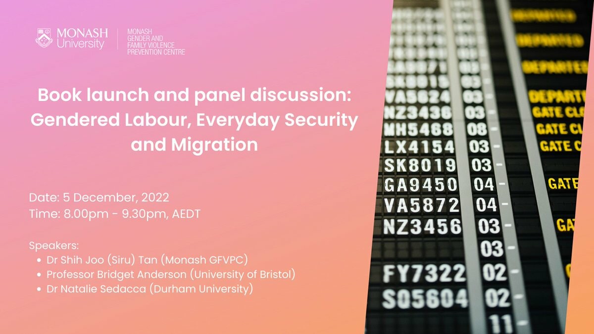 Looking forward to speaking at an online launch for Dr Shih Joo Tan's book 'Gendered Labour, Everyday Security and Migration' alongside co-panellist Professor Bridget Anderson. It's on Monday 5 December, 9am - 10.30am UK time, or 8.00 - 9.30 pm AEDT.